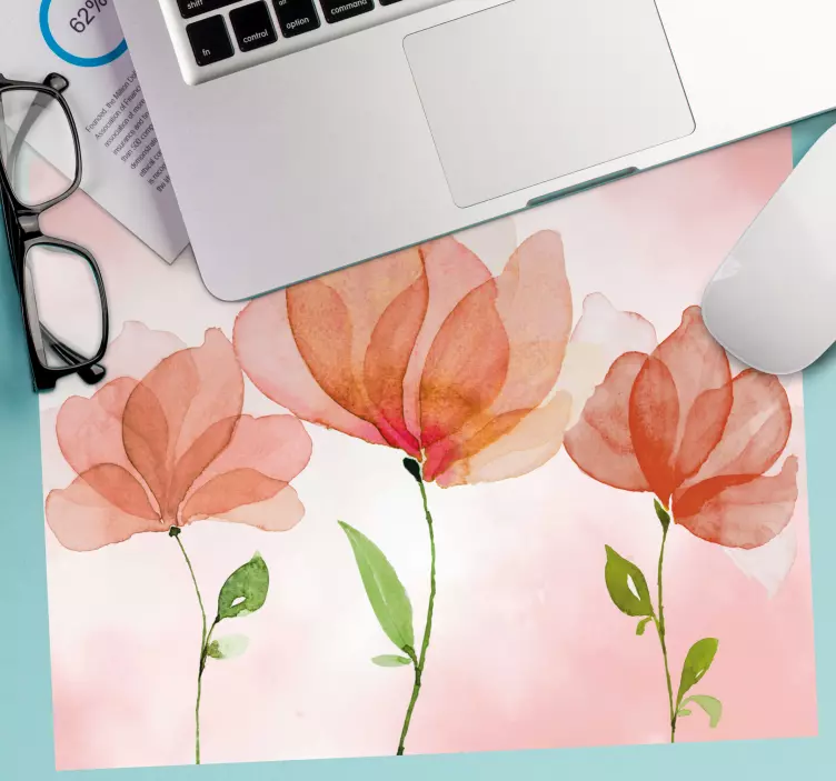 Akkor ez a "glamour stílusú" bordó pipacs eredeti egérpad rózsaszín pipacs akvarell mintával, zöld levelekkel fehér alapon.