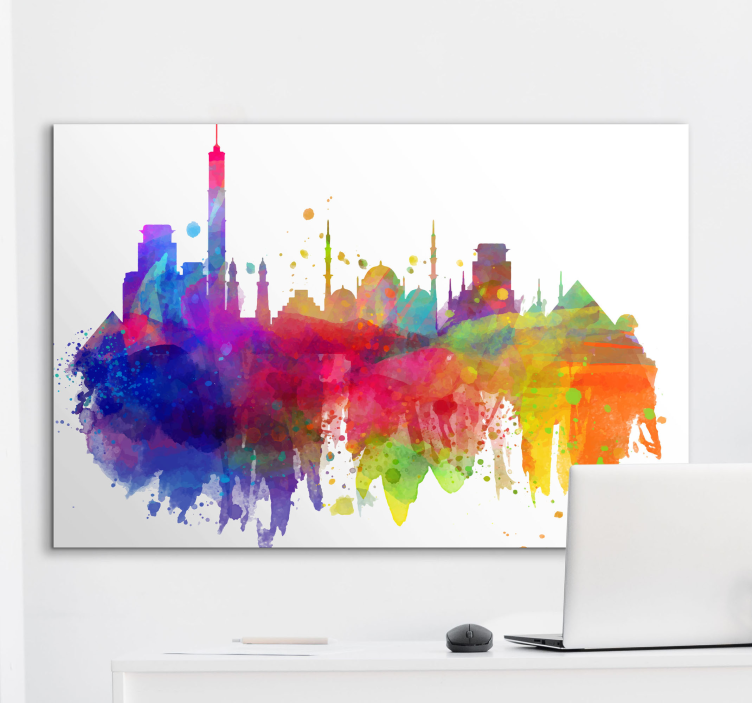 Akkor ez a művészi felhőkarcolók városi vászonképek az Ön számára! Felhőkarcolók csoportjának gyönyörű sziluettjét mutatja be, sok színnel.