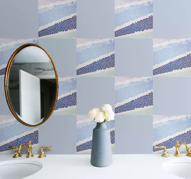 Hivatkozás: A51654Egy absztrakt mintázatú mozaik, amely texturált, hullámzó formákat mutat be különböző kék árnyalatokban. Ez a lenyűgöző kompozíció mélységet és kifinomultságot ad, ideális a belső terek fejlesztésére. A formák kölcsönhatása dinamikus vizuális élményt teremt, amely vonzza a tekintetet, így figyelemfelkeltő választás a modern dekorációhoz.