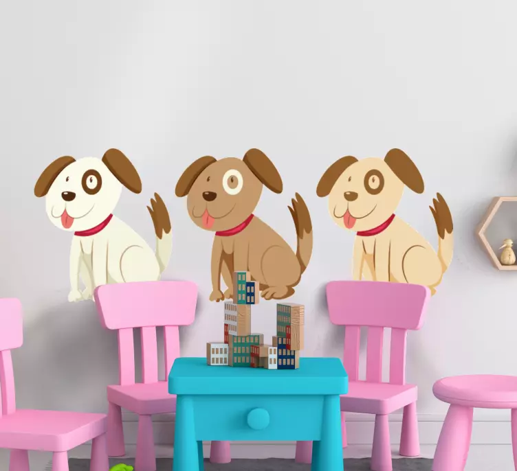 Ez az aranyos kutya színű kutya matrica tökéletes választás a baba gyerekszobájának, játszószobájának vagy óvodájának testreszabásához. A rajzfilm kutya illusztráció kollekciója különböző színekben készül, és hatalmas díszítést jelentene a gyerek terén.