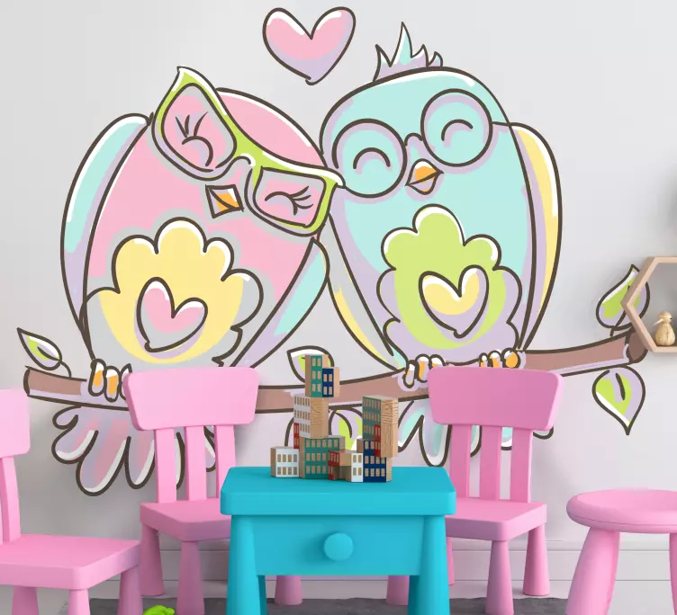 Fedezd fel az Aranyos szerelmes madarak matrica varázslatos világát, ahol a bagoly és a madarak párosítva, boldogan repkednek a rózsaszín és kék árnyalatok között! Ez a lenyűgöző ábra tökéletesen kifejezi a szerelmet és az összetartozást, hiszen ez a kivételes matrica minden falat életre kelt. Legyen szó nappaliról vagy gyerekszobáról, ez a design garantáltan mosolyt csal mindenki arcára!
