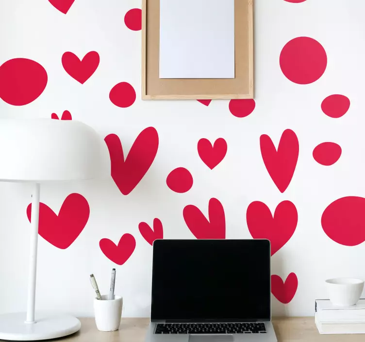 Hivatkozás: A47987Szívformák és kör alakú elemek sokasága varázslatos légkört teremt. Ez a bájos kompozíció a szeretet és a kapcsolódás érzéseit idézi elő, ami különböző helyiségekhez is illik. A játékos elrendezés kreativitásra ösztönöz, így örömteli választás bármilyen környezet feldobására.