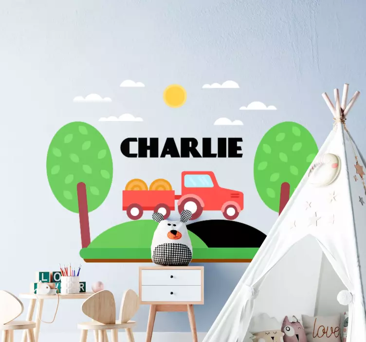 Fedezze fel az egyedi teherautó jelenet matrica gyerekeknek varázslatos világát, ahol a traktor és a farm képei életre kelnek! A gyermekek számára tervezett, testreszabható termékünk kiválóan illeszkedik bármilyen szobába, és boldog pillanatokat varázsol a kicsik mindennapjaiba. A grafikán fák, lomb és napfény játszik szerepet, ami a természet csodáit idézi fel. A játék és a kreativitás határtalan lehetőségeket kínál, hogy gyermeke szobája egyedi és személyre szabott legyen!