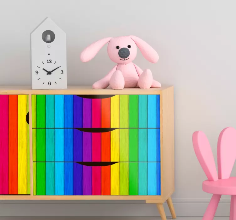 Fedezd fel az Élénk függőleges vonalak erdei állatok falmatrica lenyűgöző világát! Ez a csodálatos design a faipari stílust ötvözi a szivárvány színeivel, melyek élettel töltenek meg bármilyen teret. Az absztrakt minták és a sokszínű csíkok egyedi megjelenést biztosítanak, ami tökéletesen illeszkedik bútorainkhoz. A falmatrica fa hatású deszkákra emlékeztet, így igazán természetes hangulatot varázsol a szobába.