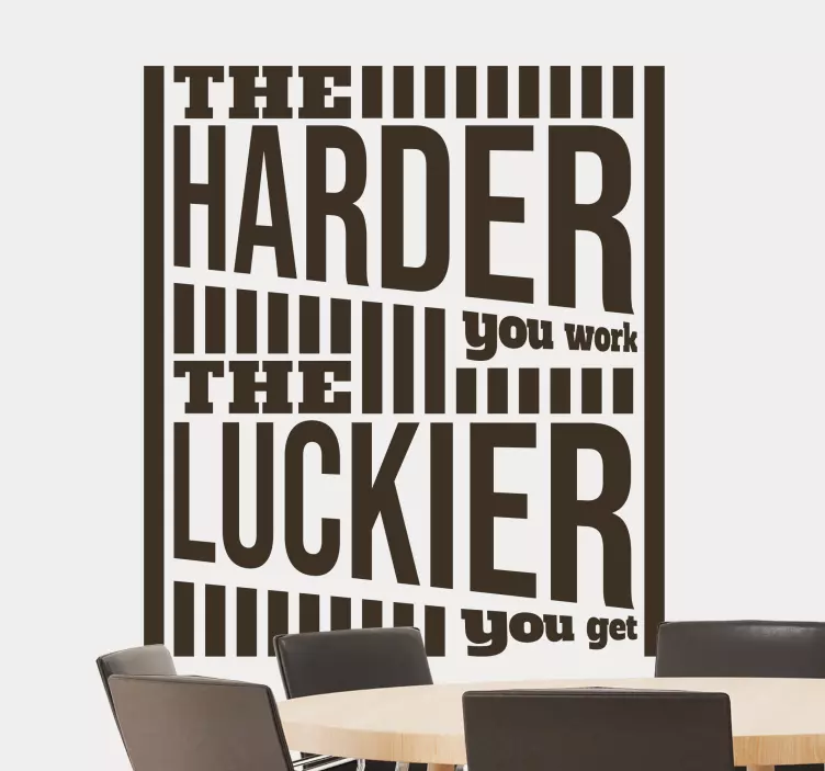 Hivatkozás: A48010Egy erőteljes idézet, amely hangsúlyozza a kemény munka és a szerencse kapcsolatát. Ez a hatásos mondat napi emlékeztetőként szolgál, hogy a sikerért való küzdelemhez elkötelezettséggel és erőfeszítéssel törekedjünk. Tökéletes irodai vagy otthoni környezetbe, hogy növelje a motivációt és inspirálja a cselekvést.