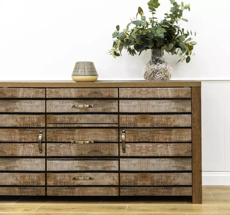 Ez a fa raklap bútormatrica tökéletes választás, ha szeretné egy bútor felületét fa deszka hatású burkolattal ellátni. A matrica valósághű fa textúrával rendelkezik, amely rusztikus, barnás, régi és durva kinézetet kölcsönöz a bútornak.