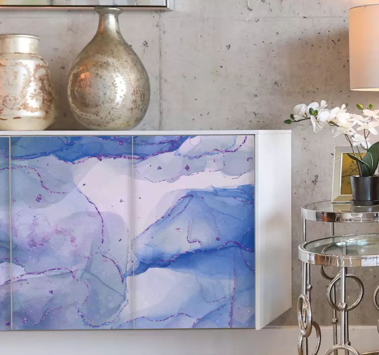 Engedd, hogy a Folyékony kék minta absztrakt matrica varázslatos világába lépj! Ez a lenyűgöző design a kék szín különböző árnyalatait ötvözi egy festékfoltra emlékeztető struktúrával, ami tökéletesen illik bármilyen bútorhoz vagy belső térhez. Az absztrakt forma és a folyékony hatás művészi megjelenést kölcsönöz, amely színesebbé varázsolja otthonodat.