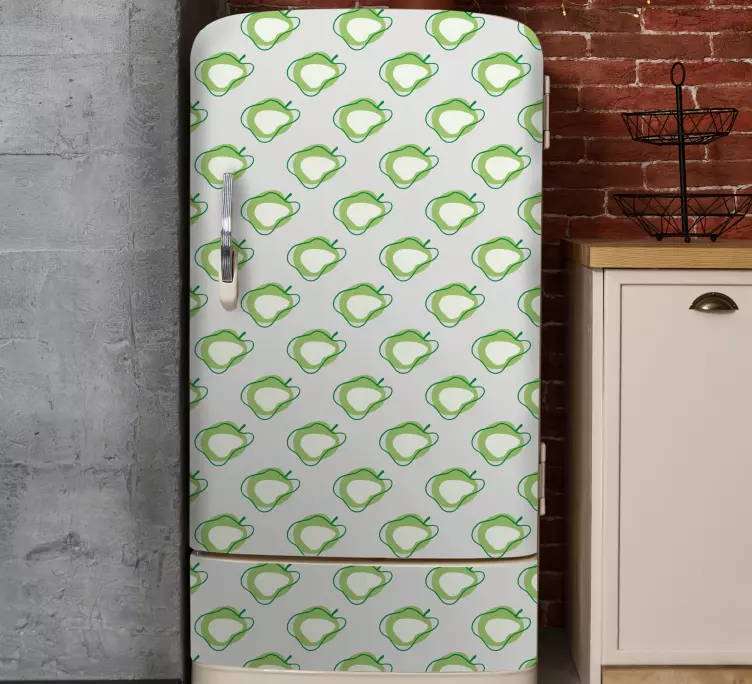 A Gyümölcsös mintás matrica hűtő egy igazi szemet gyönyörködtető, amely élénk és üde grafikájával feldobja konyháját. A firka stílusú almák és gyümölcs minták harmonikus zöld háttéren mutatkoznak meg, így a hűtőgép vagy hűtőszekrény nemcsak praktikus, hanem művészi élményt is nyújt. Ez a stílusos kiegészítő tökéletes választás minden modern konyhába, ahol a frissesség és az üdítő színek dominálnak.