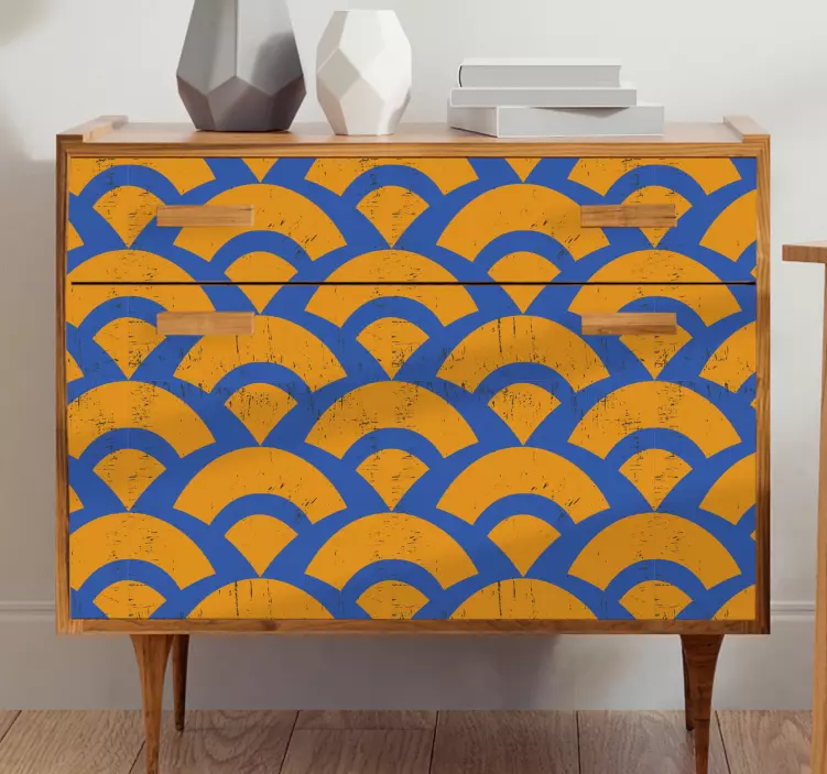 Fedezze fel a Hullámmintás borító bútor matrica lenyűgöző világát, ahol a geometriai formák és az absztrakt ívek találkoznak. A kék és narancs színek harmonikus játéka, valamint a minimalista dizájn tökéletesen feldobja bármilyen bútor felületét. Ez a termék nemcsak esztétikai élményt nyújt, hanem praktikus megoldást is jelent a lakásdekorációban.