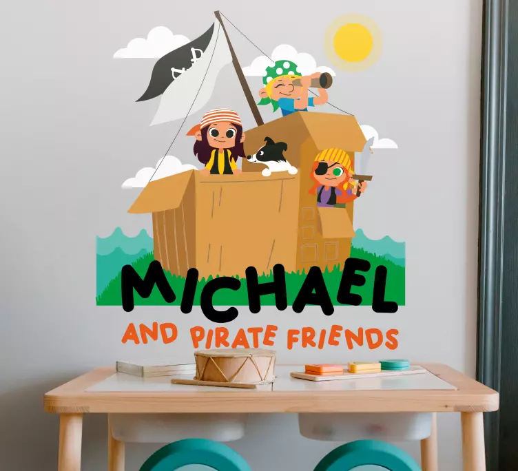 Üdvözöljük a kalózok világában! A Kalóz kaland jelenet matrica gyerekeknek egy igazi szórakozást nyújtó grafikai élményt kínál, amely tele van izgalmas kalózhajókkal, barátságos kalózokkal, akik játékra hívják a gyerekeket. Ez a testreszabható matrica lehetővé teszi, hogy a gyerekek saját nevüket is hozzáadják, így igazán egyedi és különleges élményt kapnak. A rajzfilm stílusú dizájn pedig még inkább vonzóvá teszi a terméket, hogy a gyerekek felfedezhessék a kalandok tengerét!