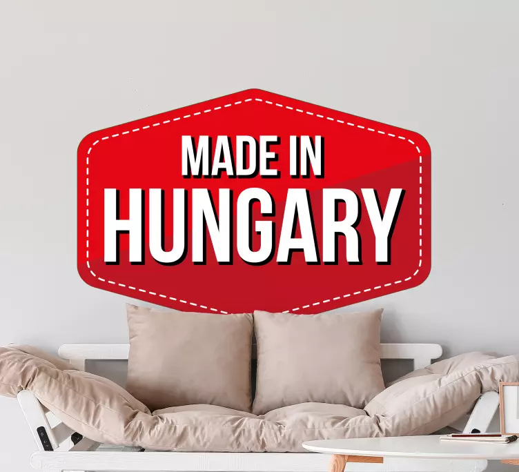 If you are looking for original patterns for your home decor, then take a look at this vinyl sticker. This is a wall sticker with an illustration of a red label, and its English text "made in Hungary" is perfectly suitable for your living room, bedroom, or any other room. It can be easily applied to any smooth and clean surface. Don't hesitate and order your high-quality sticker in the desired size, you won't regret it. We provide home delivery.