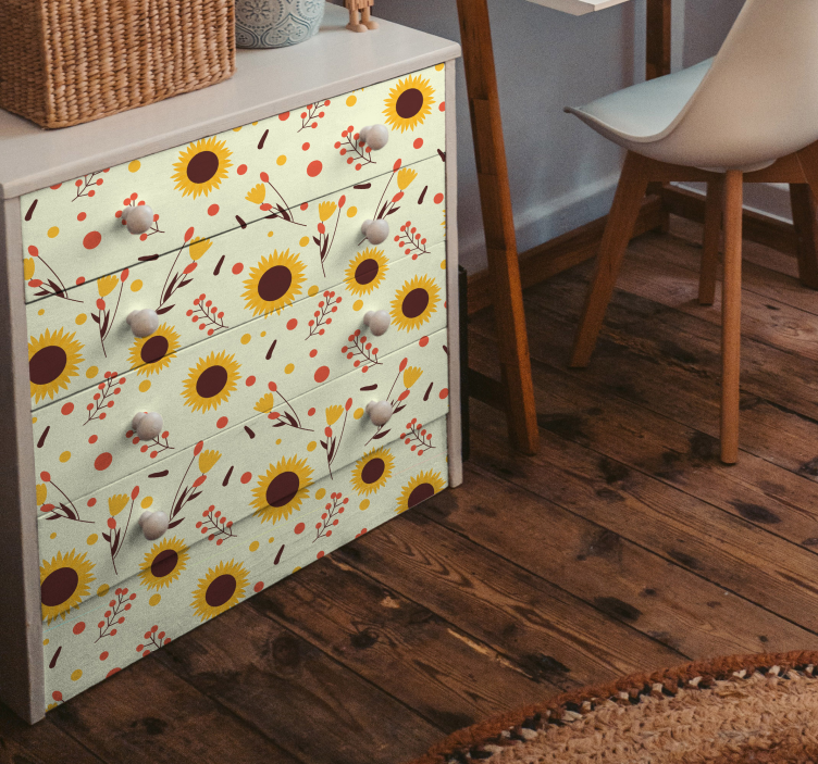 Fedezze fel a Napraforgó mintás bútor matrica varázslatos világát! Ez a lenyűgöző minta tele van napraforgókkal és virágos elemekkel, amelyek színes és élettel teli megjelenést kölcsönöznek bármely bútorának. A természet ihlette design tökéletes választás, ha szeretné otthonát egy kis frissességgel és vidámsággal feldobni.