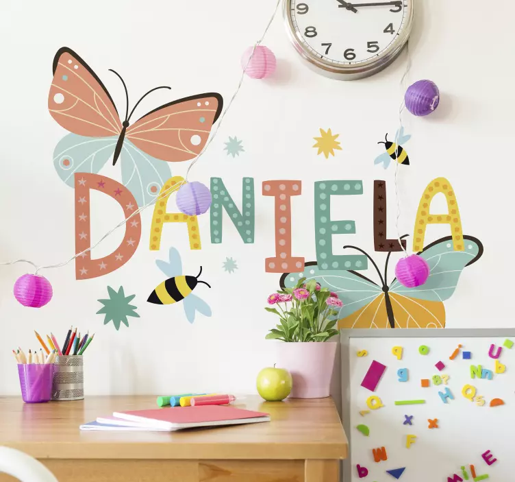A Névvel ellátott pillangós matrica babának egy igazi színes csoda, amely feldobja a gyerekszobát! A gyönyörű pillangók, amelyek színes és egyedi megjelenésükkel varázsolják el a kicsiket, természetközeli, fiatalos hangulatot teremtenek. Ez a szórakoztató design tökéletes választás a baba szobájának dekorálásához, hiszen a személyre szabott név még különlegesebbé varázsolja a matricát!