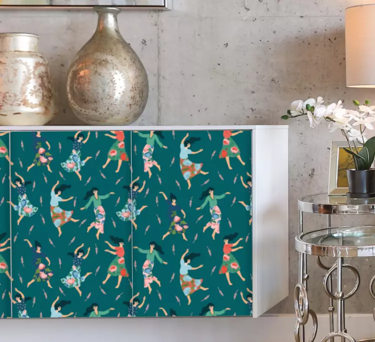 Fedezze fel az Örömteli mozgás minta bútor matrica lenyűgöző világát! Ez a különleges matrica a tánc és a mozgás örömét idézi meg, színes, dinamikus grafikájával, amely tele van absztrakt formákkal és ünneplés hangulatával. A nők által inspirált dizájn magával ragadó látványt nyújt, amely bármilyen bútor felületét életre kelti!