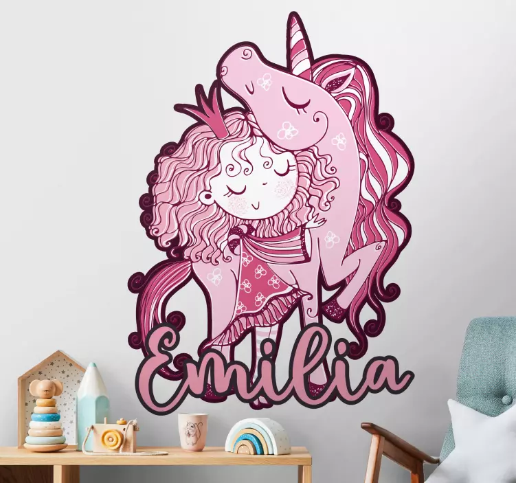 Fedezd fel a Rózsaszín egyszarvú Ölelés matrica gyerekeknek varázslatos világát! Ez a szeszélyes, rajzfilm stílusú egyszarvú és hercegnő dizájn igazi fantáziavilágot teremt a gyerekszobában. A matrica egyedi, testreszabható névvel is kérhető, így minden kislány szívét megdobogtatja! A lányok imádni fogják ezt a különleges díszítést, ami feldobja szobájuk hangulatát.