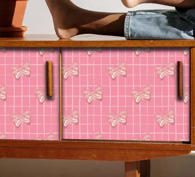 Hivatkozás: A49313Egy bájos dizájn, amely finom pillangókat ábrázol egy rózsaszín rács háttérrel. Ez a élénk motívum játékos hangulatot kölcsönöz, tökéletesen alkalmas bármely tér feldobására, miközben a természet által megtestesített átalakulás és szépség témáit hordozza.