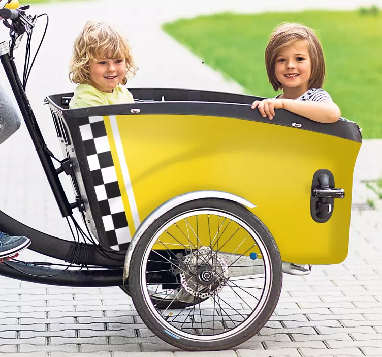 Fedezd fel a Sárga taxi design matrica bicikli varázsát! Ez a játékos és szórakoztató matrica tökéletes kiegészítője a kerékpárodnak. A sárga taxi motívum nemcsak figyelemfelkeltő, hanem remekül tükrözi a szállítmányozás izgalmát is, különösen a gyermekek számára. A bakfiets stílusú biciklikhez tervezett matrica színes, tartós és időjárásálló, így bárhol és bármikor használható, hogy még élvezetesebbé tegye a kerékpározást!