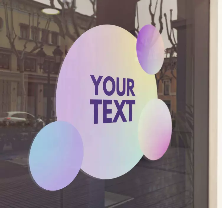 Fedezze fel a személyre szabható szövegkörök matrica kirakatokra varázslatos világát! Ez a modern és színes design elegáns gradiens és absztrakt geometriai formáival ragyogó lehetőséget kínál, hogy kifejezze egyedi stílusát. A folyadék hatású elemek és a testreszabható szöveg tökéletesen illeszkednek bármilyen kirakatba, így biztosítva a figyelemfelkeltő megjelenést!