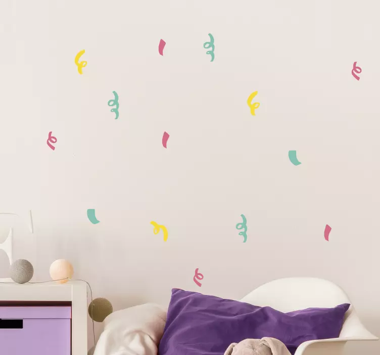 A Színes Ívelt formák matrica dekoráció egy modern és játékos design, amely tele van színes, csavart, görbe formákkal, és konfetti elemekkel! Ez a dekorációs készlet tökéletes választás arra, hogy bármilyen teret feldobjon, legyen az egy gyerekszoba, nappali vagy akár egy buli helyszíne. A színek és formák harmonikusan keverednek, így garantáltan mosolyt csalnak mindenki arcára!