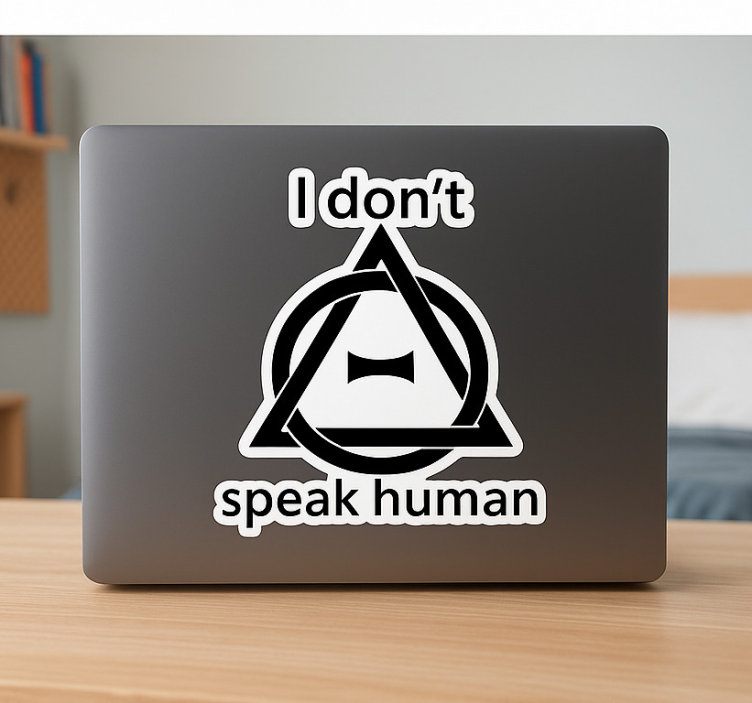 Hivatkozás: A54565A figyelemfelkeltő geometriai dizájnnal rendelkező darab egyedi módon ötvözi a modern művészetet és a humort. A 'I don't speak human' idézet játékosan sugallja a távolságtartás vagy az alternatív kommunikációs stílusok érzését, vonzóvá téve azt azok számára, akik az egyediséget és a kreativitást értékelik. Ideális laptopok vagy hasonló felületek személyre szabásához.