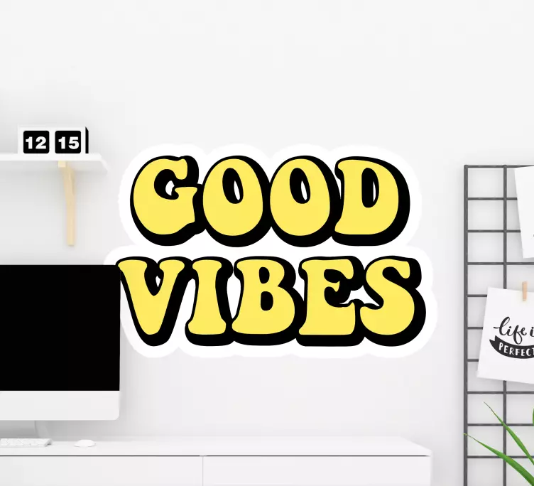 Hivatkozás: A51435Ez a design egy vidám mondatot tartalmaz, amely a pozitivitást és a meleget sugározza. Élénk színei és játékos betűtípusa felemelő légkört teremt, amely tökéletesen alkalmas bármely tér energikusabbá tételére és egy örömteli gondolkodásmód ösztönzésére.