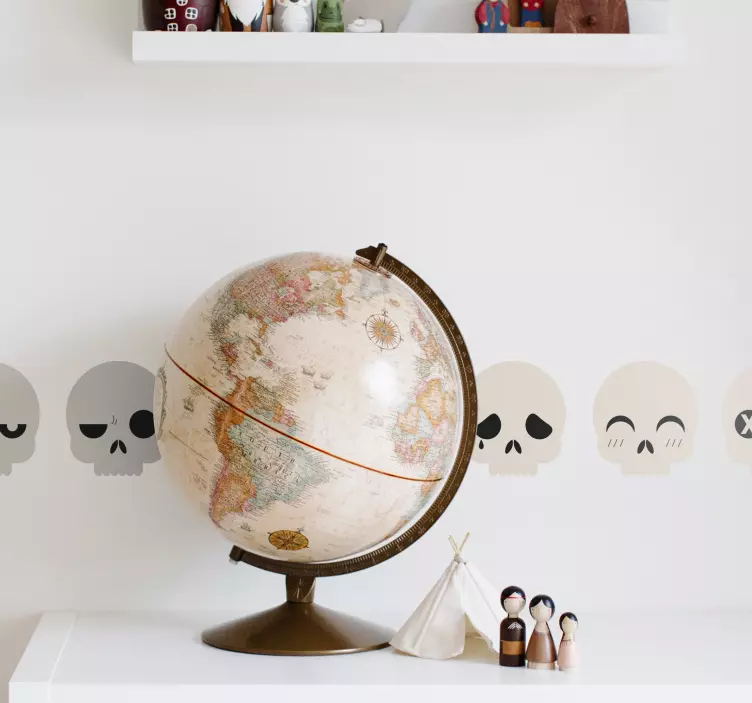 Fedezd fel a Vidám koponya arcok matrica emberek és karakterek csodálatos világát! Ez a termék igazán egyedi grafikával büszkélkedhet, amely a kalózok, koponyák és játékos karakterek színes univerzuma köré épül. A kifejező és dekoratív dizájn tökéletes választás mindazok számára, akik szeretnék feldobni otthonukat egy kis vidámsággal. Az egyes koponya arcok izgalmasan játékos megjelenést kölcsönöznek bármilyen felületnek!