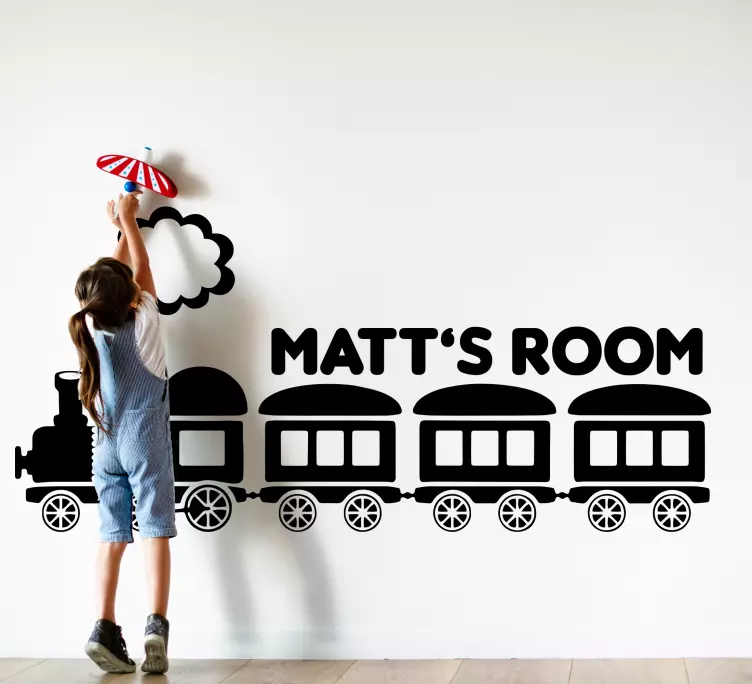 Hivatkozás: A48715Egy játékos vonat téma, amelyet gyermekek számára terveztek, lehetővé téve a nevek személyre szabását. Ez a varázslatos dizájn egy mozdonyt és kocsikat ábrázol, így játékos és képzeletbeli légkört teremt bármely szobában, tökéletes a kis álmodozók számára.