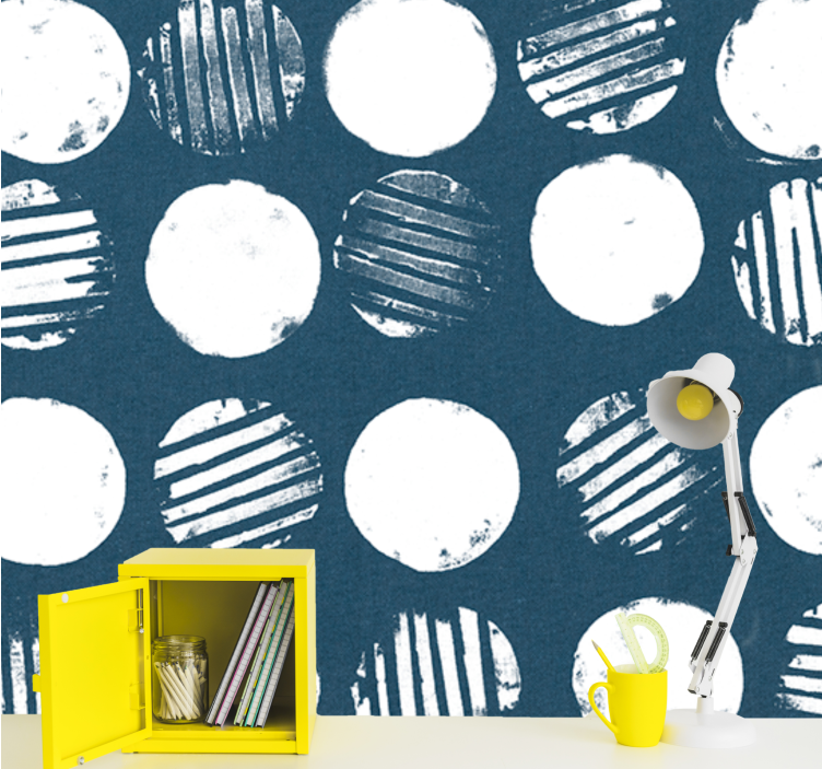 A Kör alakú mintázatú textúra falfestmények lenyűgöző grafikai élményt nyújtanak, ahol a körök és a minimalista design találkozik a kék árnyalatokkal. Az absztrakt minta egyedi bélyegekkel és csíkos elemekkel egészíti ki a teret, friss és modern megjelenést biztosítva, amely minden otthon dísze lehet!