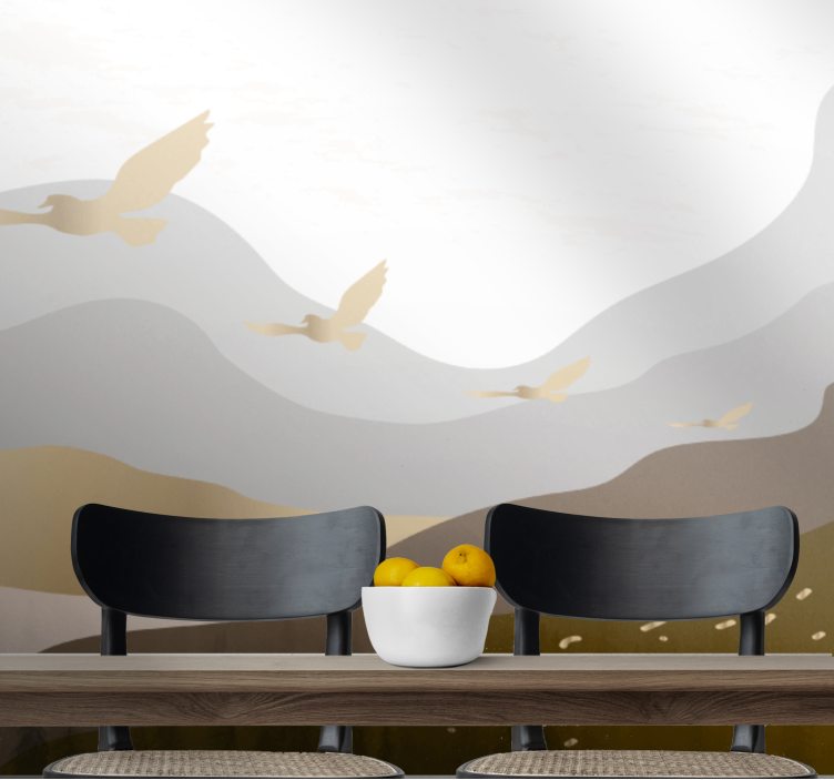 Hivatkozás: F12060Elegáns madársziluettek szárnyalnak a hullámzó dombok és a réteges hegyek felett. A dizájn gyönyörűen megragadja a természet lényegét, kiemelve egy nyugodt tájat egyszerű formákkal és földszínekkel. A harmonikus elrendezés nyugodt légkört teremt, amely a természethez való kapcsolódásra invitál.