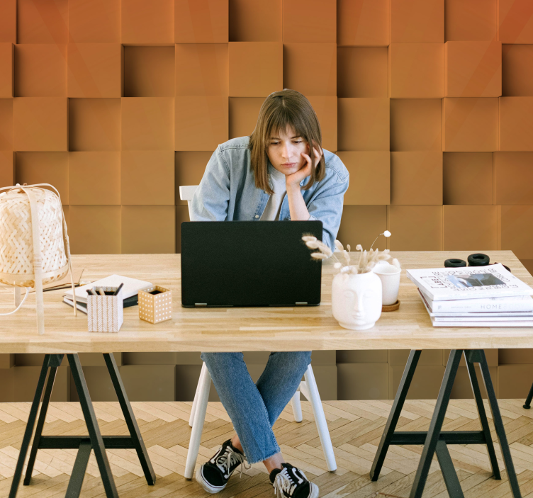 Hivatkozás: F7583Egy modern dizájn, amely meleg árnyalatokban megjelenő, texturált kocka mintát mutat be. A kompozíció egy munkaterületet tartalmaz különböző elemekkel, hangsúlyozva az egyszerűséget és a funkcionalitást. A formák kölcsönhatása vizuálisan vonzó hátteret teremt, kiegészítve a tér minimalista stílusát.