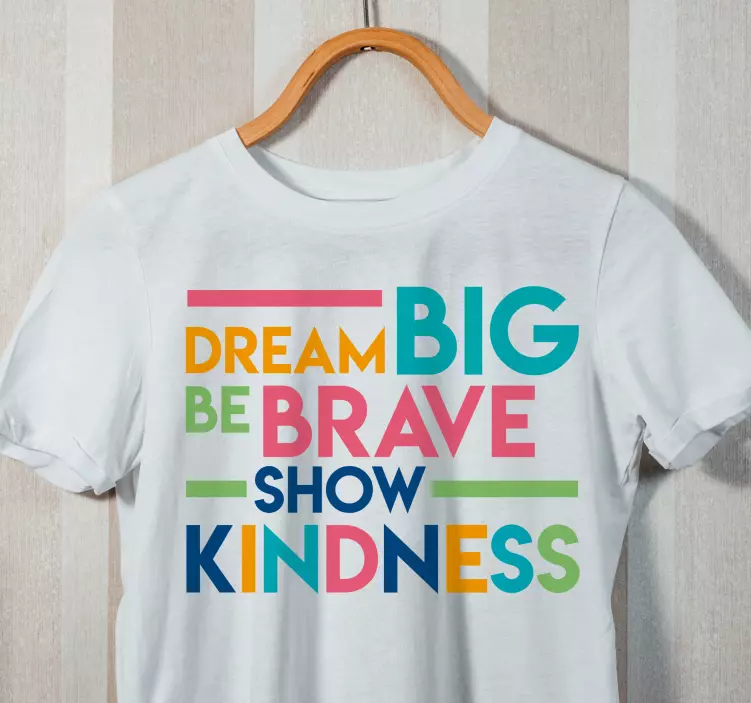 Hivatkozás: T4142Ez a dizájn inspiráló szavakat tartalmaz élénk színekben, ösztönözve a pozitivitást és a kedvességet. Az üzenet, játékos tipográfiával megformálva, rezonál a nézőkkel, így tökéletes egy támogató légkör megteremtéséhez. Ideális azok számára, akik hisznek abban, hogy stílusukkal reményt és bátorítást terjesztenek.