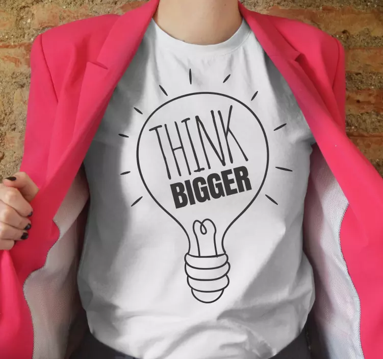 Hivatkozás: T4862Ez a dizájn egy izzót ábrázol a 'Think Bigger' felirattal vastag betűkkel. A képi világ inspirációt és pozitív gondolkodást sugall, egyszerű, mégis erőteljes vizuális elemekkel, amelyek összhangban állnak a motivációs témával.