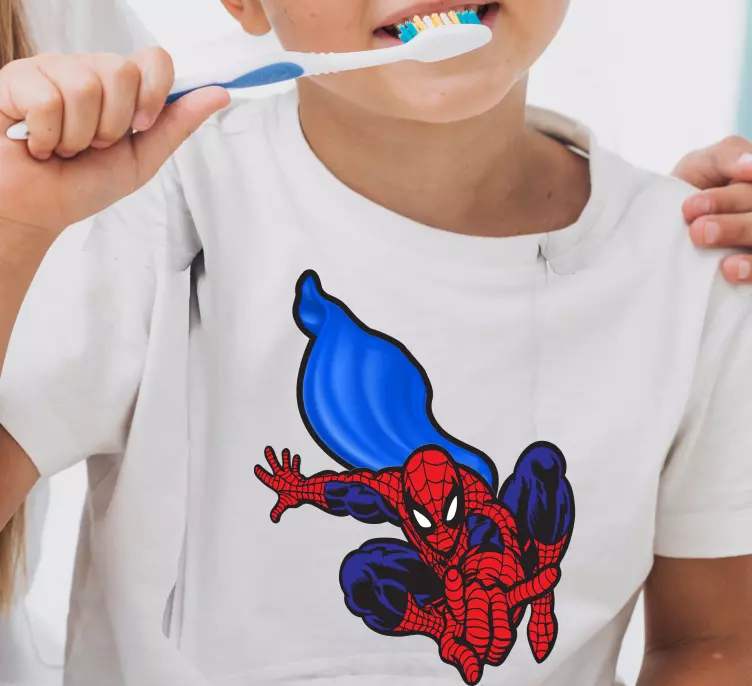 Hivatkozás: T4339Ez a vibráló dizájn egy játékos pók hőst ábrázol, aki kék köpenyt visel, tökéletes a gyerekek számára. Ideális azoknak, akik szeretik a szuperhősöket, megragadja a szórakozás és a kaland lényegét, így nagyszerű választás eseményekre és mindennapi viseletre.
