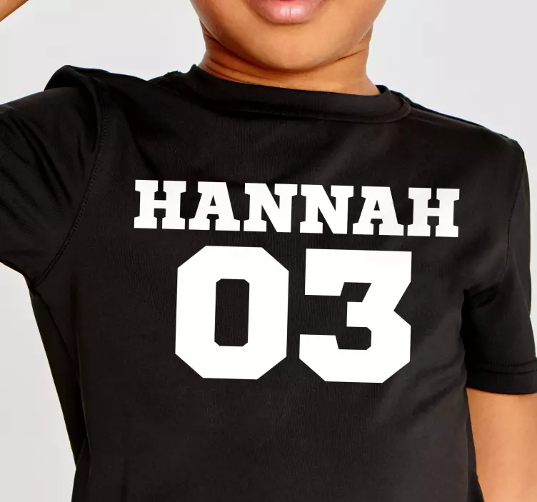 Hivatkozás: T4713Egy stílusos, személyre szabott gyerekruha, amelyen egy kiemelkedő név és szám található, elegáns fekete háttéren. Aktív fiatalok számára ideális, ez a darab a kényelmet egy szórakoztató, sportos stílussal ötvözi, amely feldobja bármely gyermek ruhatárát.