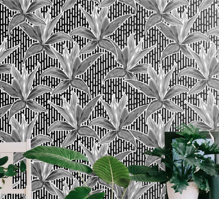 A Botanikai geometriai Tapéta levelek alkalmazása inspiráló és egyedi. A szürke monokróm mintázatú tapéta friss és modern megjelenést kölcsönöz bármilyen térnek.