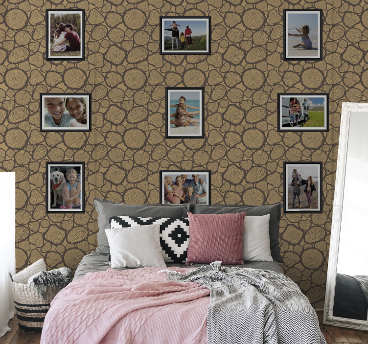 Hivatkozás: P9981A design fás gyűrű mintázata természetes érzetet kölcsönöz. A környező keretekben kedves fényképek találhatók, ami személyes hangulatot teremt. Tökéletes emlékek bemutatására, miközben fokozza a tér vizuális vonzerejét.