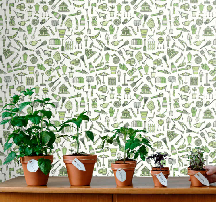 Ez a kertészeti zöld mintás tapéta megnyugtató természetérzetet kelt bármilyen otthoni, irodai vagy egyéb helyiségben.