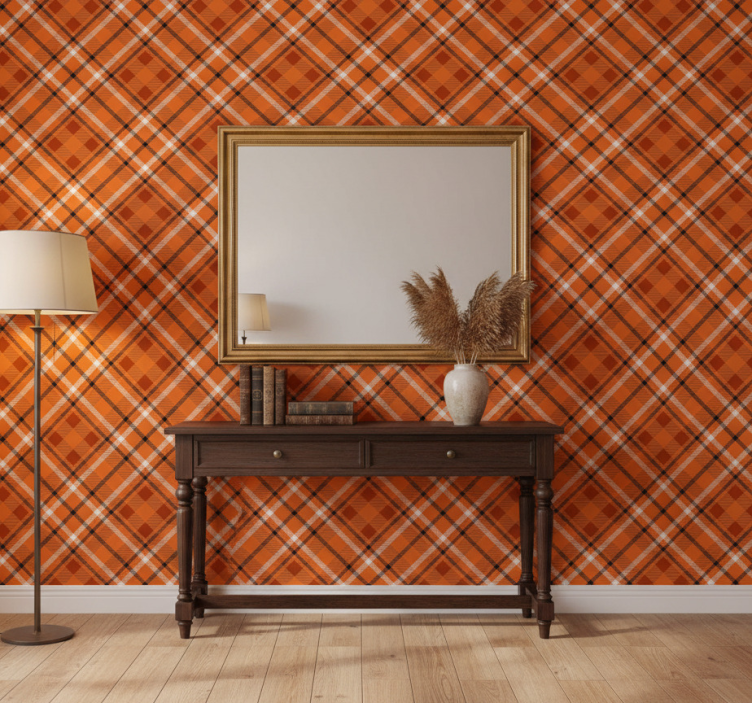 Narancssárga mintás négyzetek barna vonalakkal párna tapéta