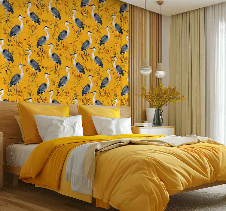 A sárga tapéta gém minta egyedi és stílusos megjelenést kölcsönöz a térnek. A gémek és a sárga minta lenyűgöző látványt nyújtanak, amely inspiráló és modern hatást kelt a helyiségben. A friss és élénk színek hozzájárulnak a pozitív hangulathoz és a kreatív légkörhöz. A tervezet lenyűgöző és stílusos, és ideális dekorációként szolgál otthonok, irodák és üzletek számára.
