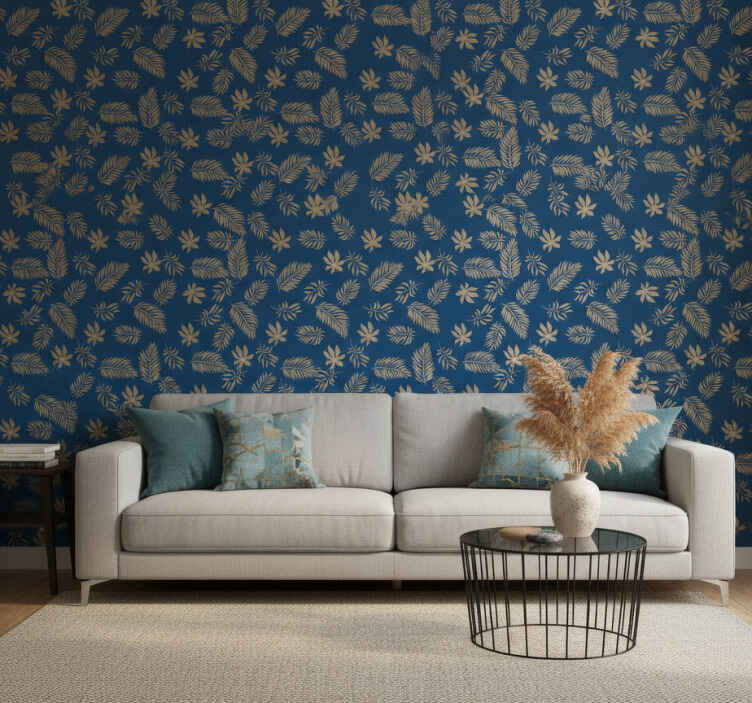 Tapéta virágdíszes afrika stílusú kék virágmintás