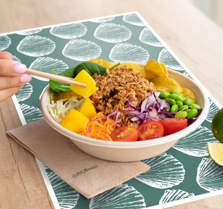 A Kagylómintás tányéralátétek struktúra egy igazán különleges design, amely a tenger varázsát hozza el otthonába. A kreatív minta kagylókkal, héjakkal és szerves formákkal játszik, megjelenítve a tenger ihlette grafikát. A texturált minta zöld árnyalatokkal kiemeli a természet szépségét, így minden étkezés egy különleges élménnyé válik.