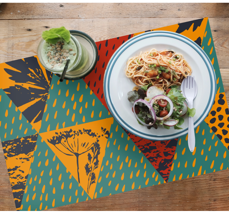 A Merész geometrikus minta - tányéralátétek eredeti egy igazi vizuális élményt nyújt, amelyben a háromszög, háromszögek, minta, eső, állat, dzsungel, törzsi, növények, virágos, élénk, színes, absztrakt, modern elemek harmonikus egyveleget alkotnak. Ez a különleges minta nemcsak szemet gyönyörködtető, hanem izgalmas atmoszférát teremt bármely étkezőhelyiségben!
