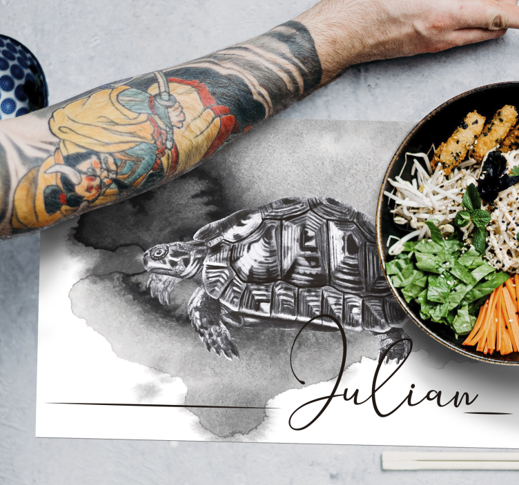 Ezzel a fantasztikus, személyre szabott névvel ellátott vinil terítékkel, kézzel rajzolt teknős és az Ön által választott névvel.