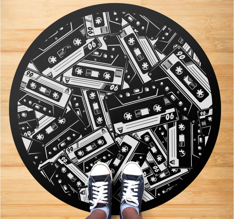 A Cassette tape koncepció vinil szőnyeg másoknak egyedi és stílusos megoldás, amely tökéletesen ötvözi a retro dizájnt a modern kényelemmel. A grafikán egy színes kazetta és szalag található, amely a zene iránti szenvedélyt tükrözi. A fekete és fehér minta eleganciát ad, míg a zenei elemek életet visznek a térbe.