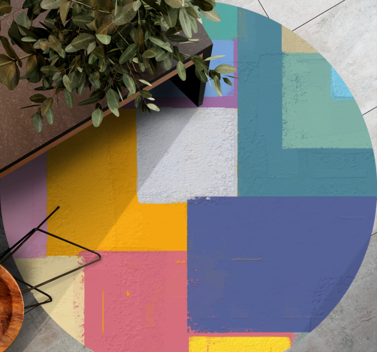 Fedezze fel az Élénk geometriai alakzatok vinil szőnyeghez egyedi világát, ahol a négyzetek, téglalapok, és más geometriai formák életre kelnek! Ez a festett, színes és absztrakt dizájn nemcsak szemet gyönyörködtető, hanem funkcionális is, tökéletes választás bármely modern otthonba, ahol a stílus és a kényelem találkozik.