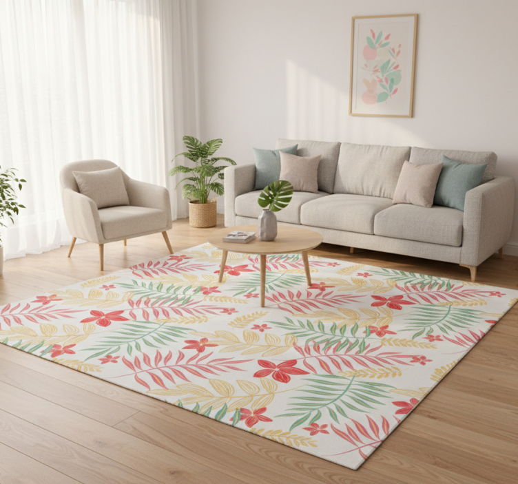 Virágok és növények vinil szőnyeg neon levelek mintával